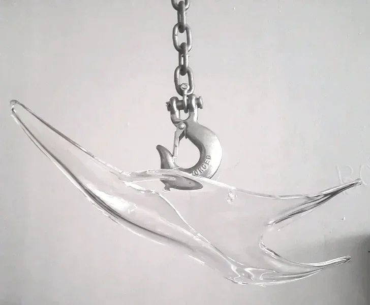 Abstract glass sculpture unit, speaks of a reaching hand or floating bird. Units made to be placed solo or in plural configurations as art decor or chandelier replacement. Meant to give a feeling of earnestness reaching towards the unknown, embodying the weightlessness of change.
